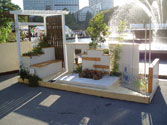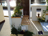 風に揺れる木立は見ていて癒されます。そんな風を感じることのできる作品にしたかったので意図的に風の通り道をつくり、花壇のベンチに座ると奥から風を体全体で感じらるようにしました。匂いや音やなびく枝や水面で風を表現しました。