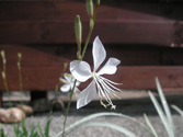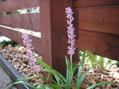 ウッドフェンスを目隠しを兼ねて配し、足元は草が生えないように砂利の洗い出しで舗装して、ポイントで草花を植えることによって柔らかい雰囲気にしました。