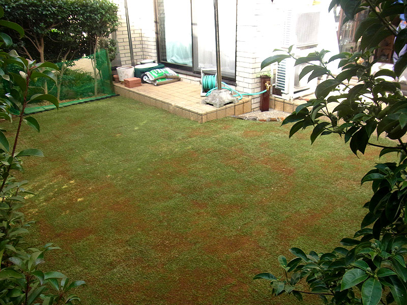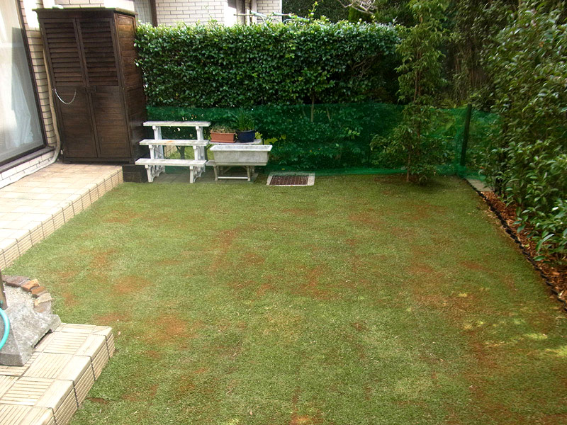 去年の10月にマンションにお住まいのお施主様からの依頼で「雑草がはえて管理できないので何とかしてほしい」、「できれば芝生を育ててみたい」とのことでした。