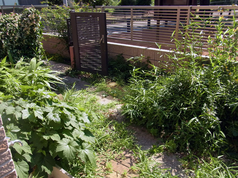 アメリカ人のご夫婦からの依頼で荒れてしまっている庭を和庭にかえてほしいとの依頼でした。石や砂利、ウメ、モミジ、ツバキなどご希望のものも決まっていて簡単な図面まで用意してくれていました。