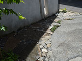 玄関周りから道路沿いのスペースは幅60cmでしたがあえて大きめのモミジやチャボヒバ、下草を植えることで立体感がでました。