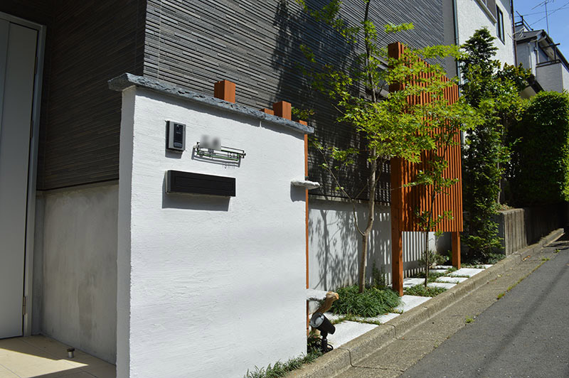 東久留米市で新築をされたお施主様からの依頼で庭の空間ではないけど駐車場、玄関周り、道路沿いのスペースをうまく使って楽しめる空間にしてほしいとのことでした。
