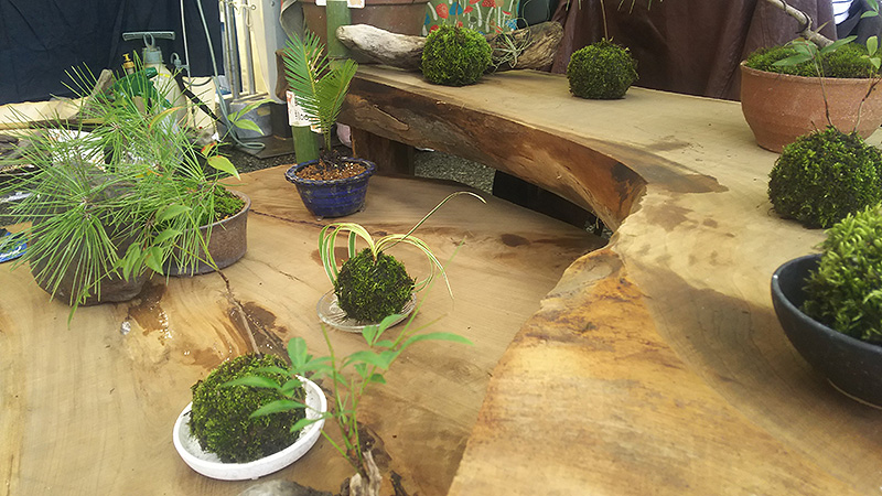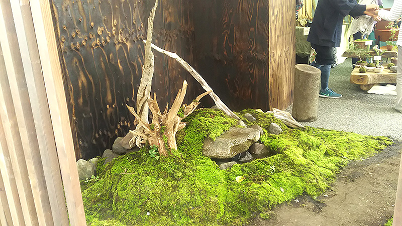 今年で弊社は5回目の出店になりますが、毎年来場者様に庭や緑の良さをアピールすべく、試行錯誤の上テントブースにいろんな空間を作り上げたり苔玉などを販売してきました。