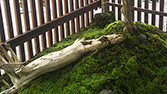 植木や花などの植物は一切使わず、枯れた木、苔、水のみで構成しました。