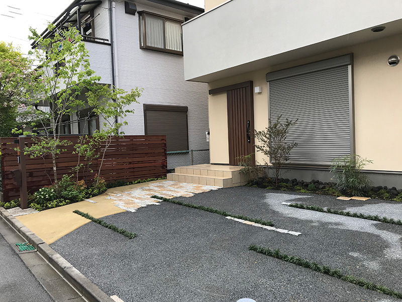 駐車場は2台分停めたいということでアプローチを含めてなるべく平らにする必要がありました。